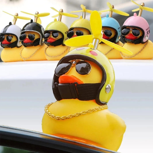 Lovely Duckling Car Ornament With Helmet Chain / Auto Dashboard Toy Duck